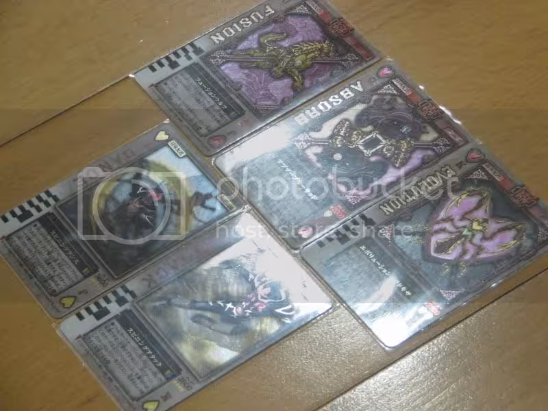 All that is lacking is the Absorb Queen Card, and three of these cards (Float, Drill, and Evolution King) have screencap images, but still works the same way as the show Rouze cards does in the Chalice Rouzer. You can check the barcodes in the side if you don't believe me. :sweat: